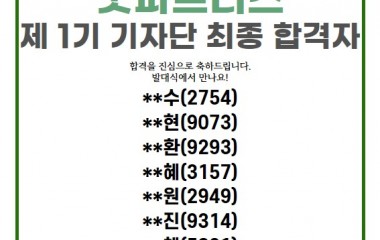 기자단 합격을 진심으로 축하드립니다![발대식 일정 및 장소 안내]7월 31일 금요일 오전 9시 30분 ~ 오…